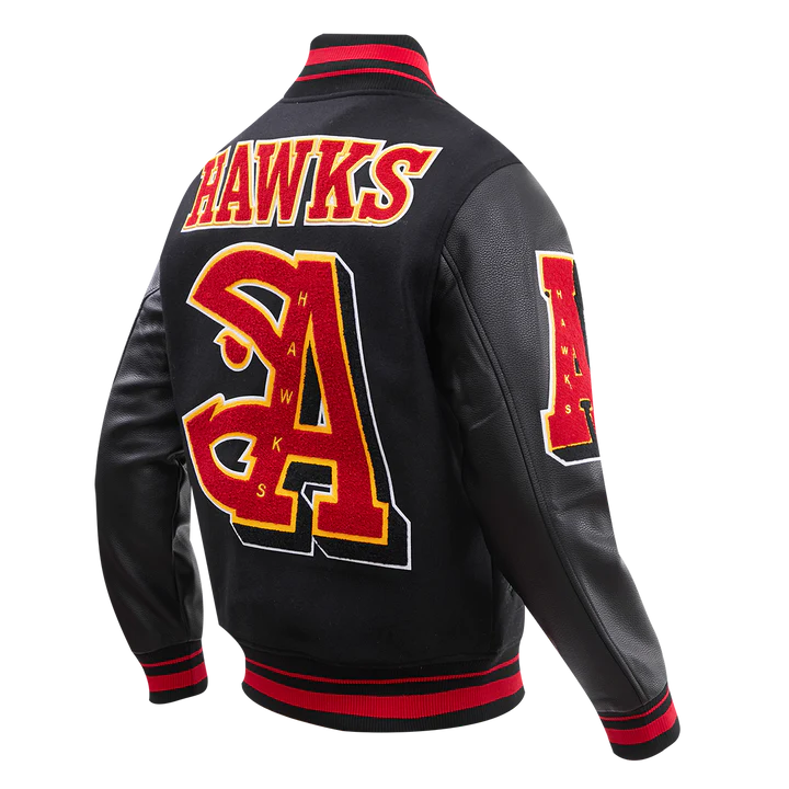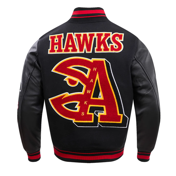 Atlanta Hawks Mash Up Logo Black Varsity Jacket
