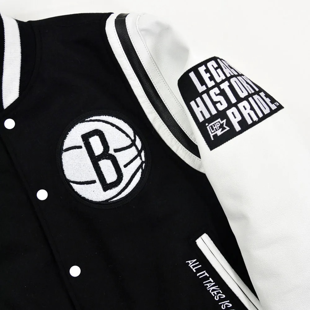 Brooklyn Nets Motto Black and White Varsity Jacket