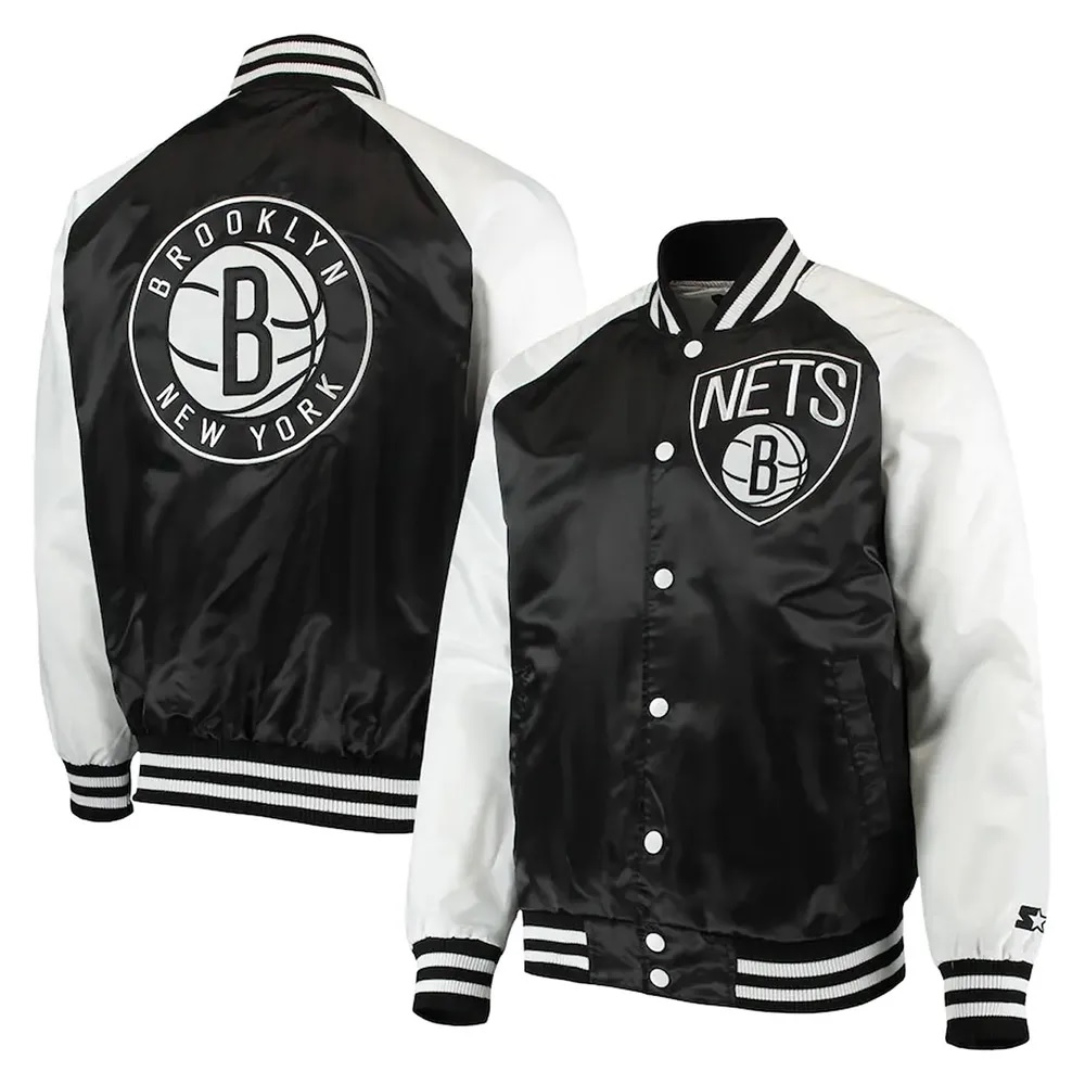 Brooklyn Nets Point Guard Black and White Satin Jacket