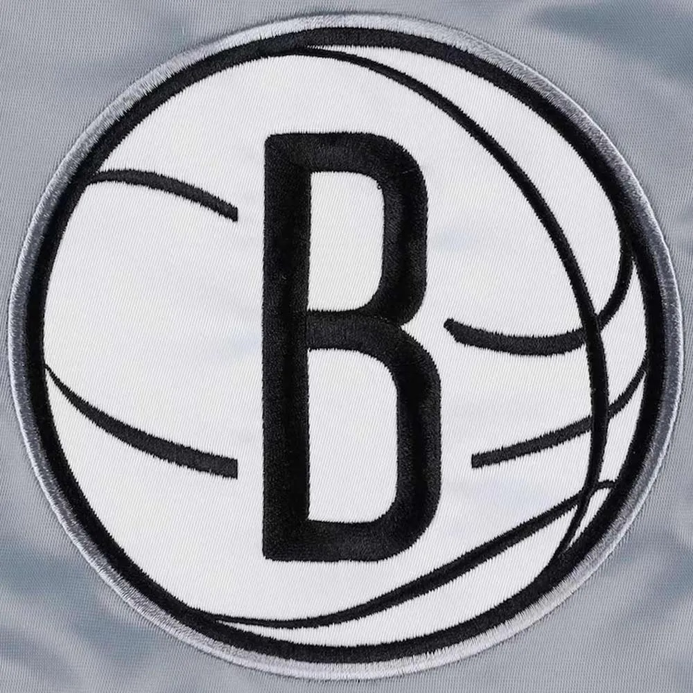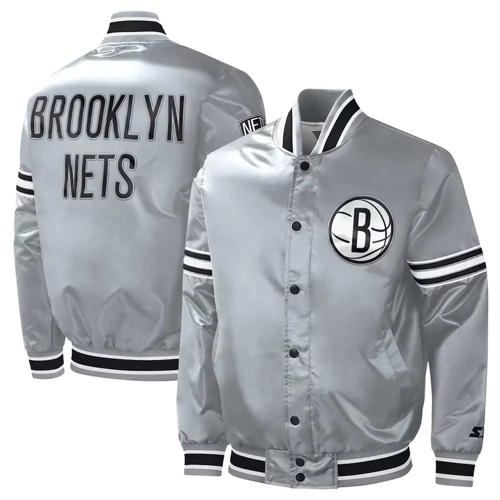 Brooklyn Nets Slider Gray Varsity Satin Jacket