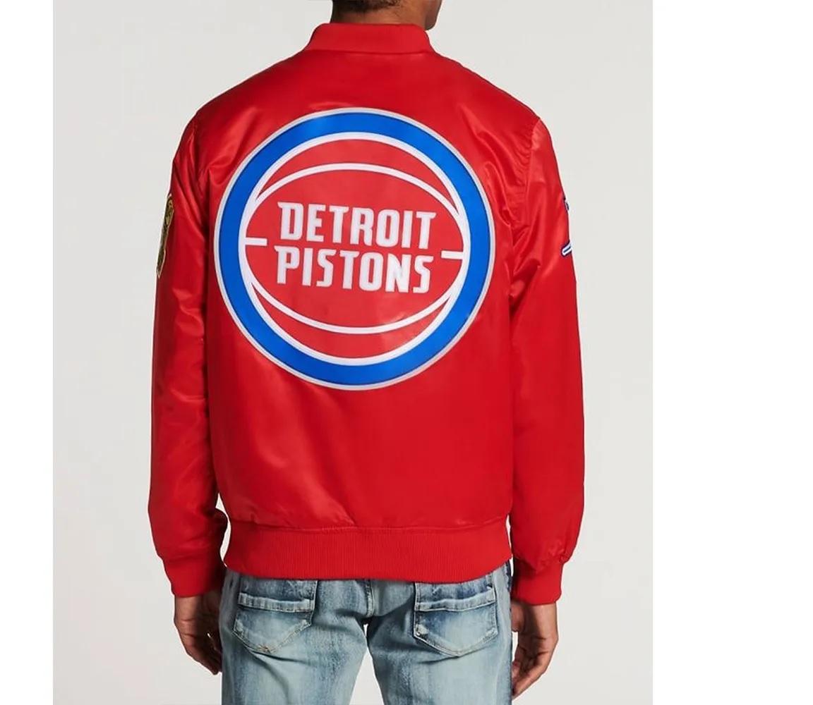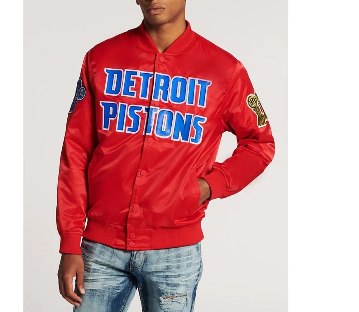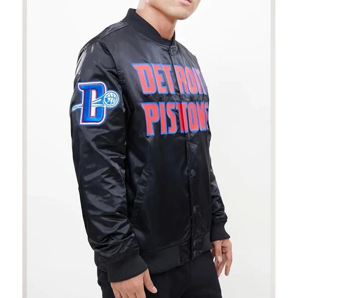 Detroit Pistons Big Logo Black Satin Jacket