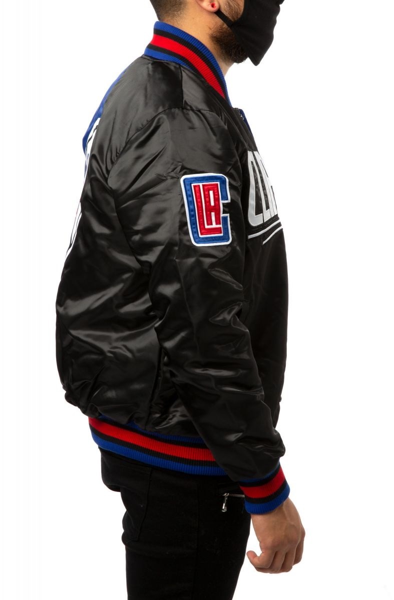 Starter Los Angeles Clippers Black Blue Satin Varsity Bomber Jacket