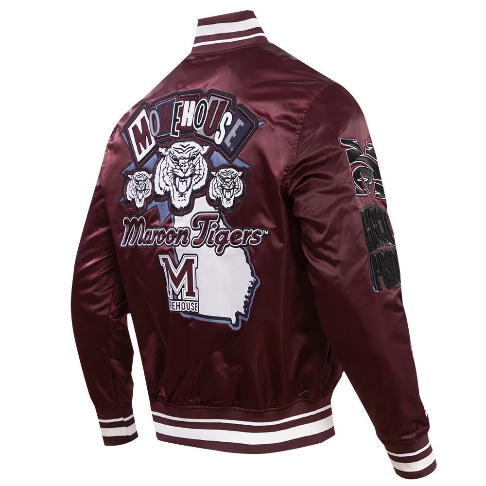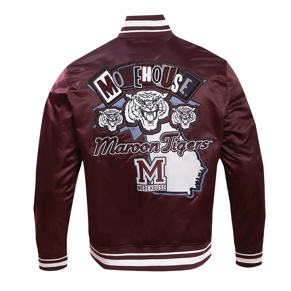 Morehouse College Homecoming Rib Maroon Satin Varsity Jacket