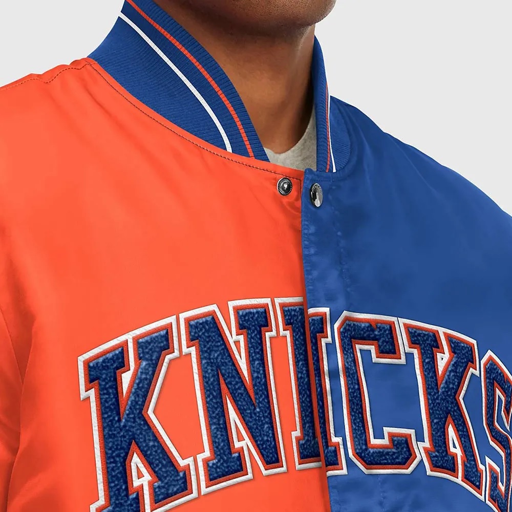 NY Knicks Varsity Satin Orange and Blue Jacket