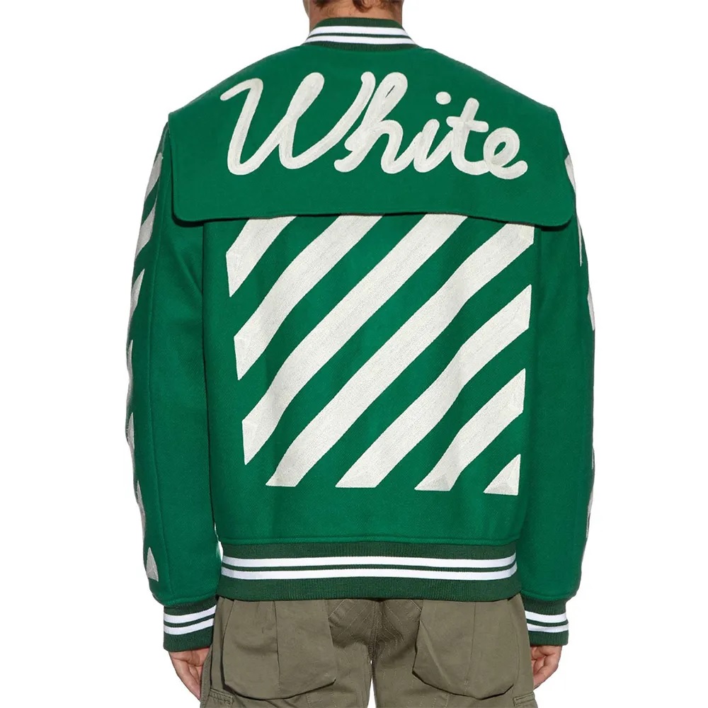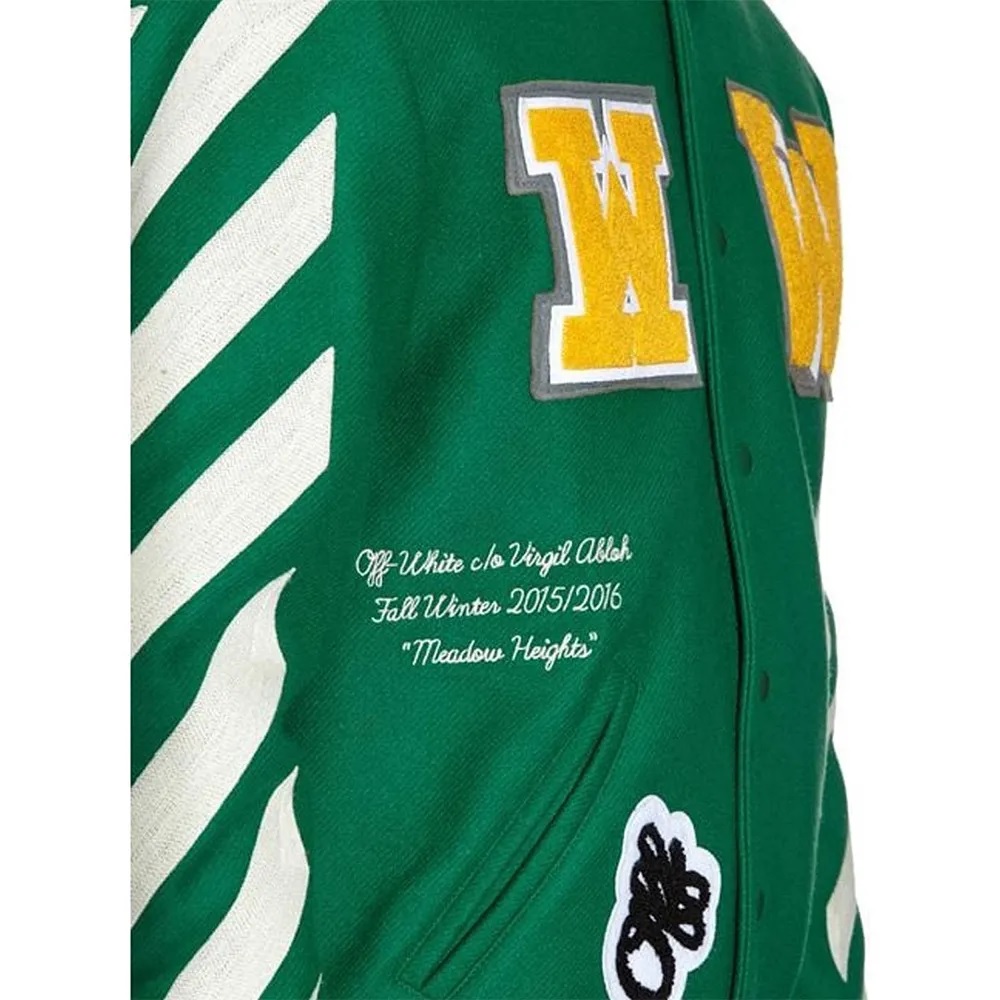 Off-White Virgil Abloh Green Varsity Full-Snap Wool Jacket
