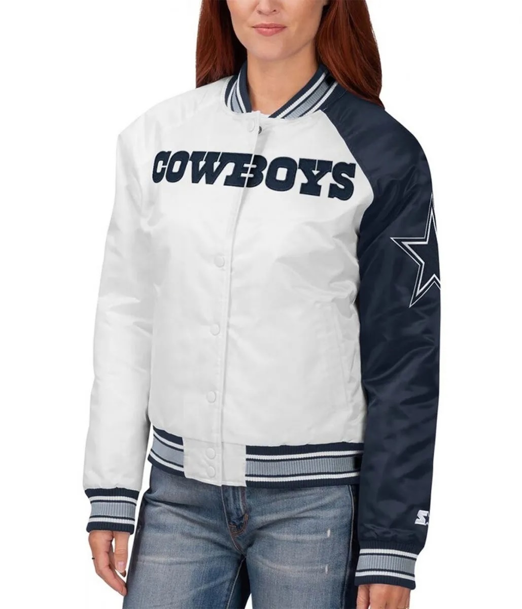 Starter Dallas Cowboys Endzone White and Blue Satin Jacket