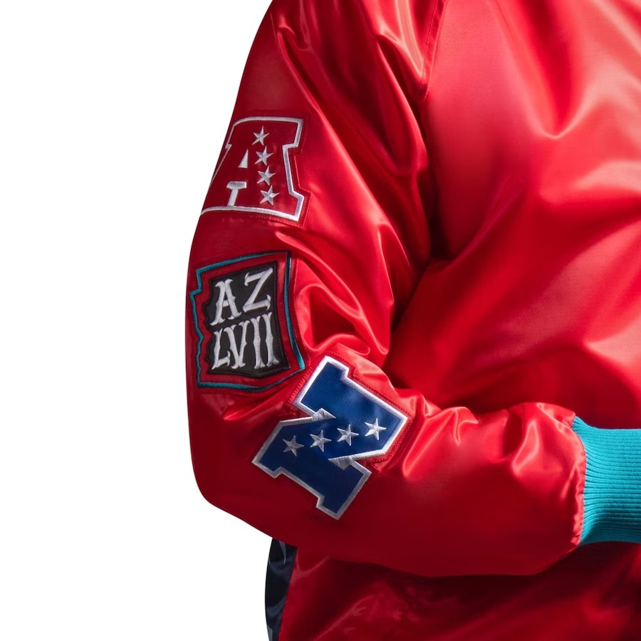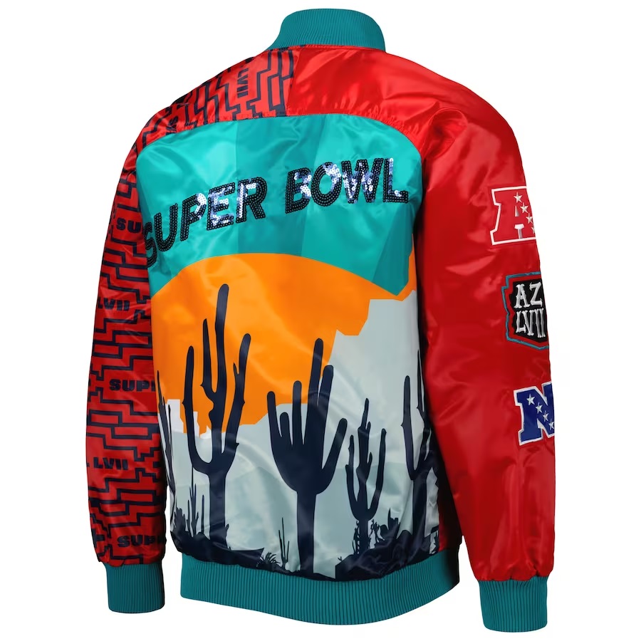 Be the first to review “Super Bowl LVII Red Satin Full-Snap Varsity Jacket” Cancel reply